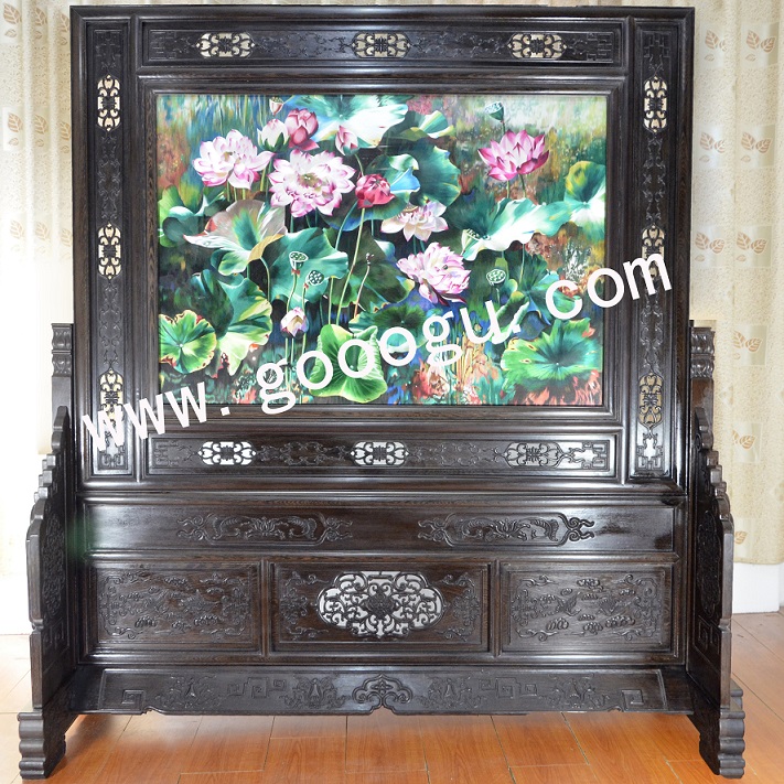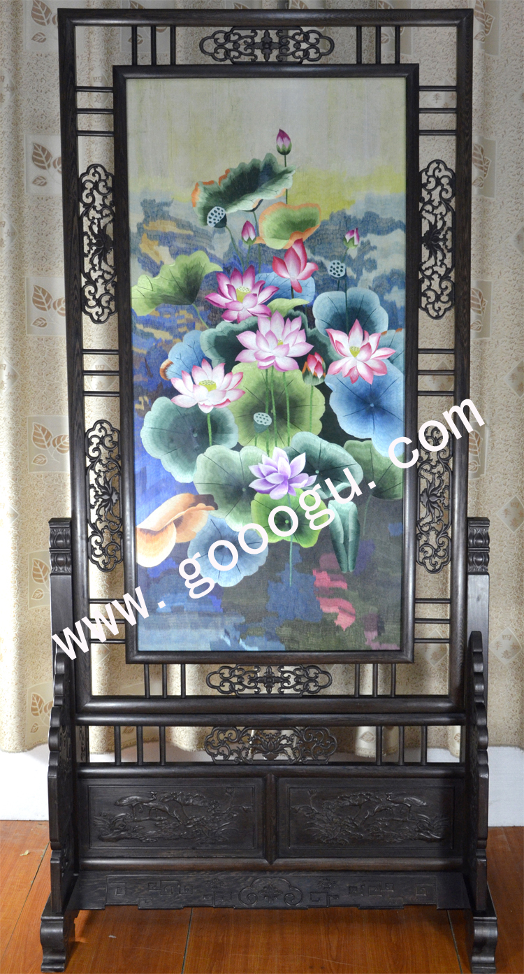 蘇繡精品屏風(fēng) 滿(mǎn)繡隔斷 純手工精品 荷花 中式屏風(fēng)