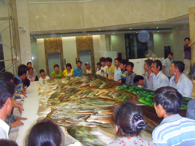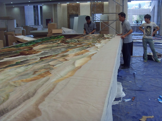 貴州盤(pán)江精煤股份有限公司是1999年經(jīng)貴州省人民政府批準(zhǔn),由盤(pán)江煤電集團(tuán)公司作為主發(fā)起人,聯(lián)合中煤進(jìn)出口公司、貴陽(yáng)特鋼公司、防城港務(wù)局等七家單位共同發(fā)起設(shè)立的股份制企業(yè),盤(pán)江股份于2001年5月在上交所正式掛牌交易。 公司是盤(pán)江礦區(qū)煤炭開(kāi)發(fā)主體。盤(pán)江礦區(qū)是我國(guó)十二五規(guī)劃建設(shè)的全國(guó)14個(gè)大型煤炭生產(chǎn)基地之一。礦區(qū)因與云南富源、宣威接壤,地處中國(guó)攀西六盤(pán)水這個(gè)資源富集金三角的最南端,又以豐富的煤炭資源稱冠江南,被譽(yù)為金三角下的一顆明珠。 2013年7月盤(pán)江股份集團(tuán)大樓新址即將完工,蘇州嬌古蘇繡負(fù)責(zé)承建新大樓一樓的刺繡隔斷工程,在時(shí)間有限的情況下,嬌古蘇繡負(fù)責(zé)人接到通知后緊鑼密鼓的安排各道工序,工藝師們都在加班加點(diǎn),在時(shí)間有限的情況下高效率的完成了任務(wù),6月底,嬌古蘇繡安排工作人員前往盤(pán)江股份集團(tuán)所在地貴州,為整體隔斷工程進(jìn)行裝裱并指導(dǎo)安裝。在經(jīng)過(guò)大家相互配合的情況下,隔斷的主體工程已經(jīng)安裝就位,盤(pán)江股份集團(tuán)公司的領(lǐng)導(dǎo)對(duì)嬌古蘇繡工作人員高效率的完成任務(wù)給予高度的評(píng)價(jià),對(duì)刺繡工程的整體效果也是非常滿意。