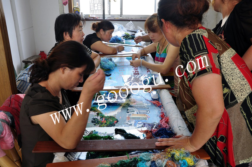 嬌古蘇繡繡娘正在一起認(rèn)真研討刺繡的工藝和繡法,確保作品達(dá)到行業(yè)高水平