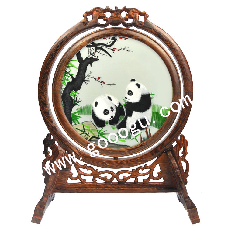 慶典禮品推薦:雙龍頭雙面繡臺(tái)屏系列(熊貓)