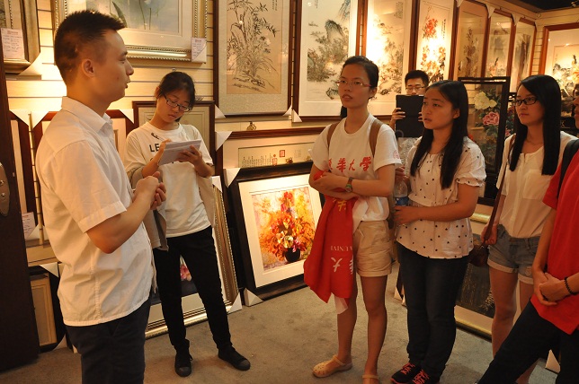 將中國傳統(tǒng)文化的藝術(shù)和高端學(xué)術(shù)相結(jié)合是時代發(fā)展的趨勢,用高科技的文化來充實民族工藝的發(fā)展,今天上午作為中國紡織業(yè)的高等學(xué)府東華大學(xué)的紡織學(xué)院及紡織科技協(xié)會走進(jìn)蘇州嬌古蘇繡,嬌古蘇繡總經(jīng)理張奇?zhèn)ハ壬哟饲皝韰⒂^的一行人員,并向同學(xué)們講解了蘇繡的制作過程和蘇繡工藝。在交流參觀過程中,同學(xué)們不時的提出問題,張總都是一一為其解答,最后張總希望同學(xué)們努力學(xué)習(xí),將先進(jìn)的技術(shù)應(yīng)用到我們的民族文化當(dāng)中,為弘揚(yáng)文化藝術(shù)作出貢獻(xiàn)。