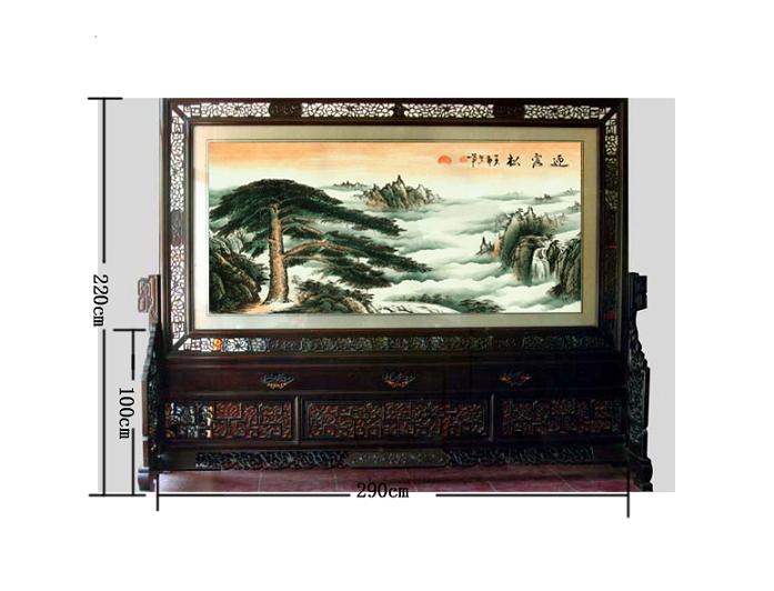 風(fēng)景玄關(guān)屏風(fēng) 雙面繡酒店隔斷 迎客松 手工刺繡 包物流精品推薦
