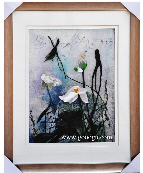 蘇繡裝飾畫荷花圖手工刺繡&家裝壁畫客廳壁畫別墅裝飾畫