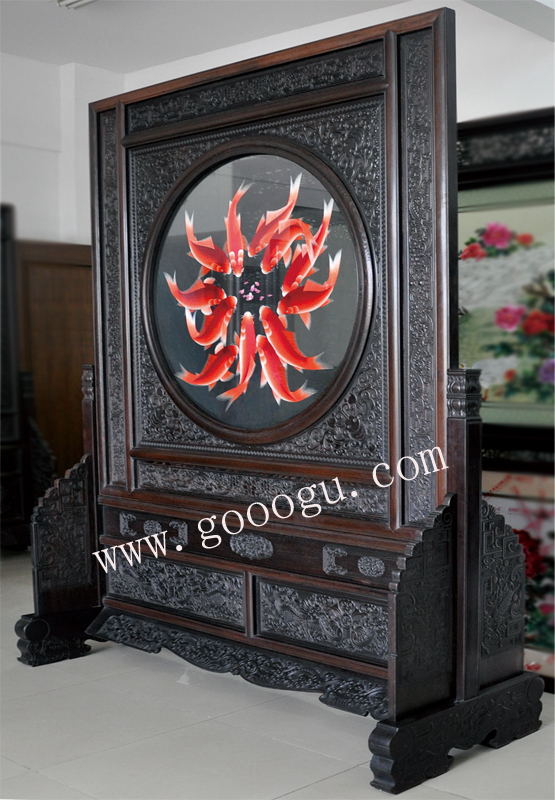 嬌古蘇繡木質(zhì)屏風 玄關雙面繡 簡易大方 十二紅魚圖特色中國風