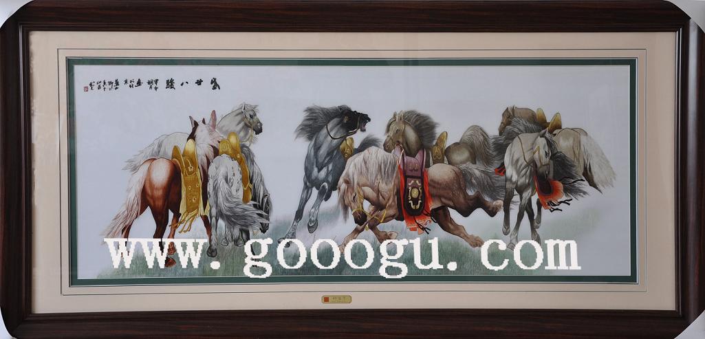 盛世八駿圖 大型駿馬刺繡畫 手工刺繡畫
