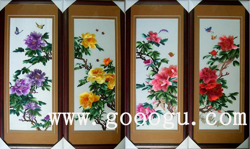 牡丹套裝刺繡畫|手工刺繡裝飾畫|繡品居家裝飾畫