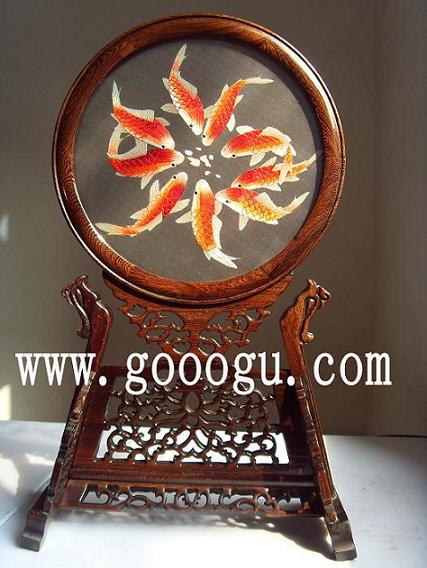 嬌古蘇繡木質(zhì)屏風(fēng) 玄關(guān)雙面繡 簡易大方 十二紅魚圖特色中國風(fēng)