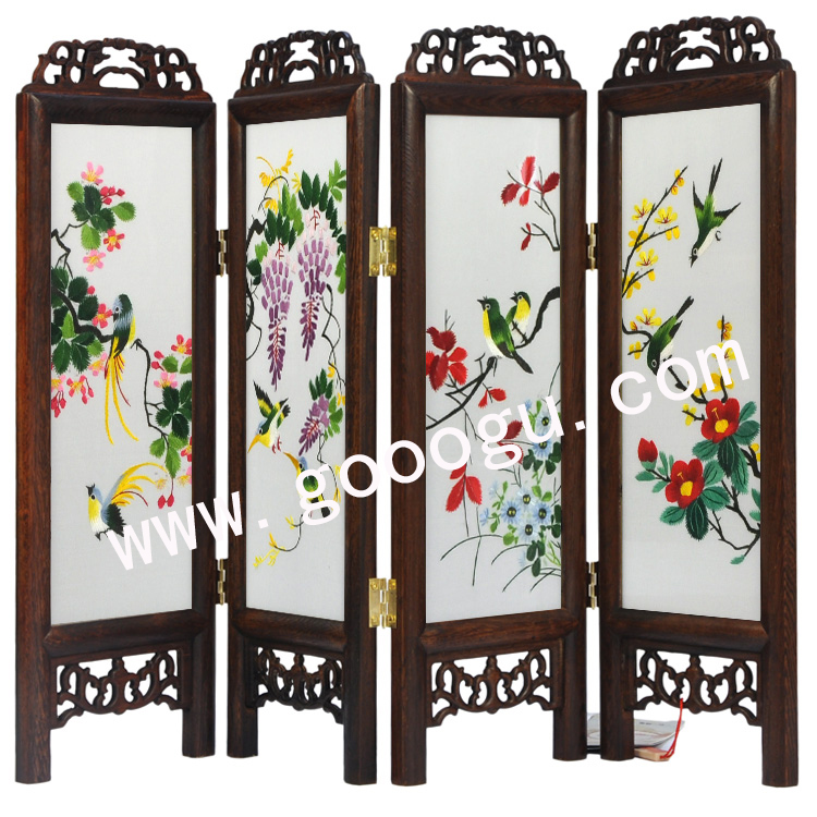四扇雙面繡折疊小屏風(fēng)|工藝小屏風(fēng)|蘇繡小屏風(fēng)禮品