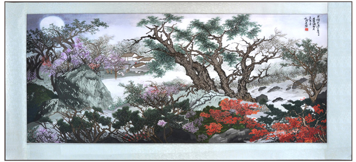 月掛天邊手工刺繡 蘇繡工藝品 單面繡 中國特色禮品 外事紀(jì)念品