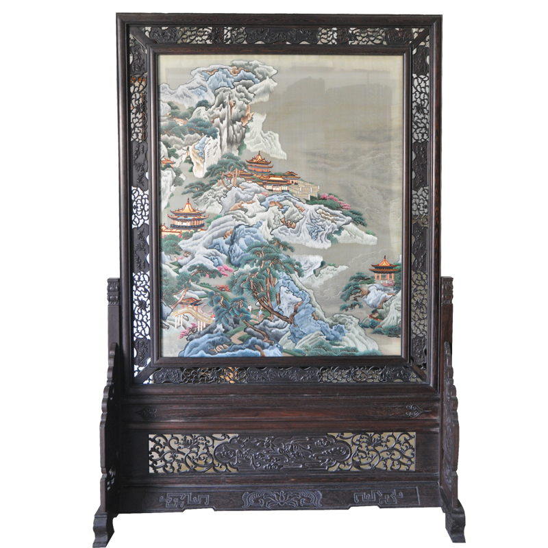 高檔手工刺繡 玄關(guān)屏風 蓬萊仙境圖雙面繡隔斷 傳統(tǒng)工藝包物流