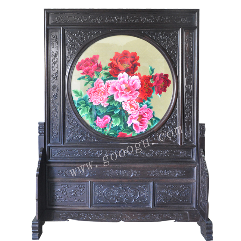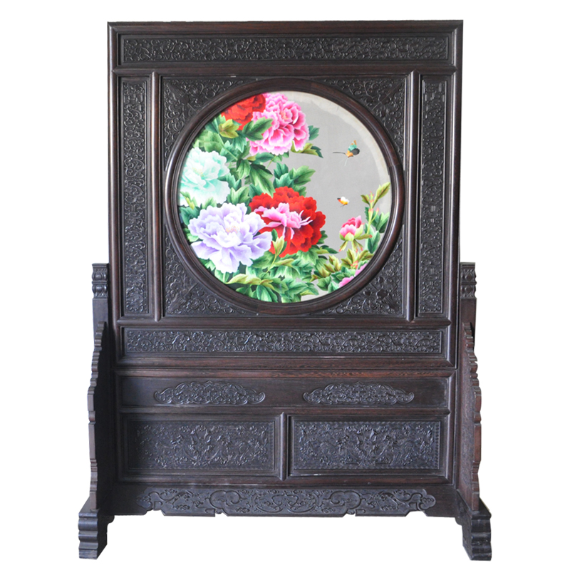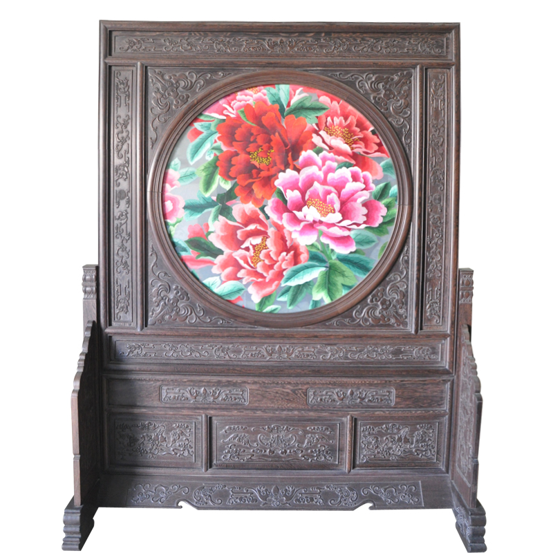 蘇繡隔斷 玄關(guān)牡丹屏風 手工雙面刺繡 國花傳統(tǒng)工藝品禮品