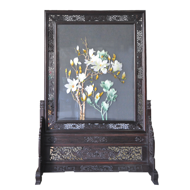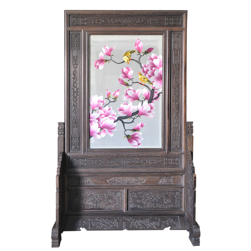 家用蘇繡隔斷 玉蘭雙鳥屏風 精品雙面刺繡 國花傳統(tǒng)工藝品禮品