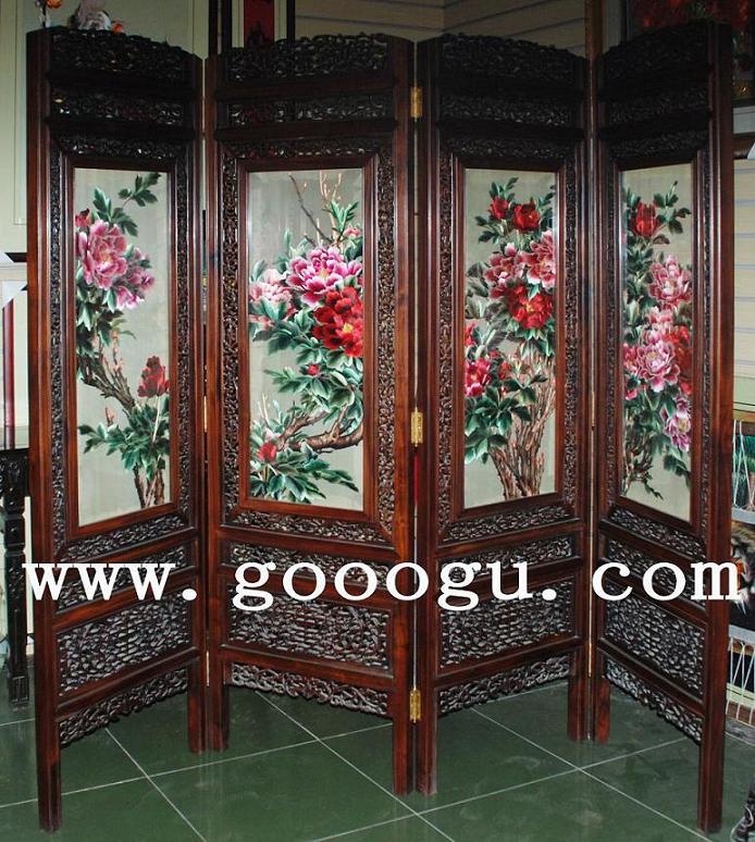 牡丹刺繡屏風(fēng)|工藝木雕屏風(fēng)|裝飾屏風(fēng)