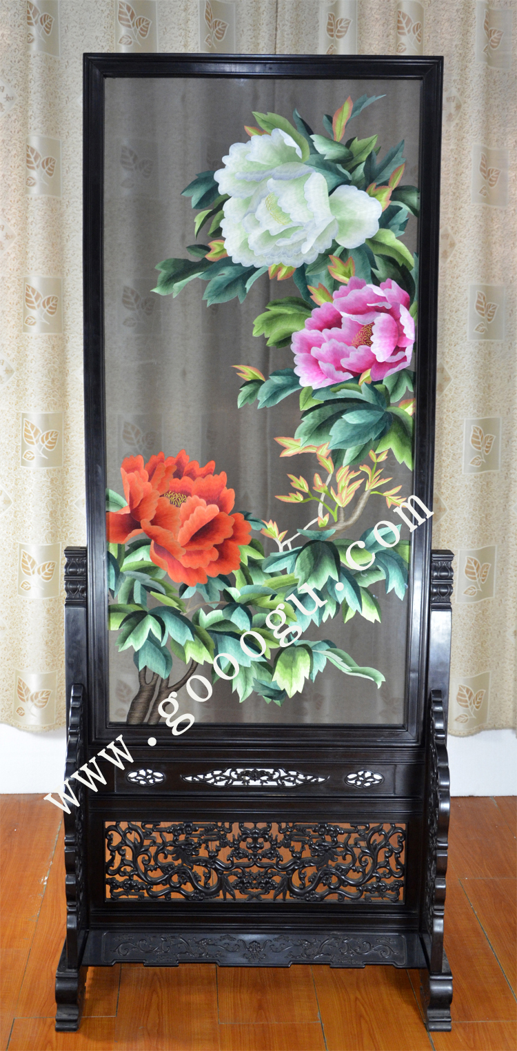 蘇繡牡丹玄關(guān) 家用屏風(fēng) 純手工刺繡 紫檀木工藝品