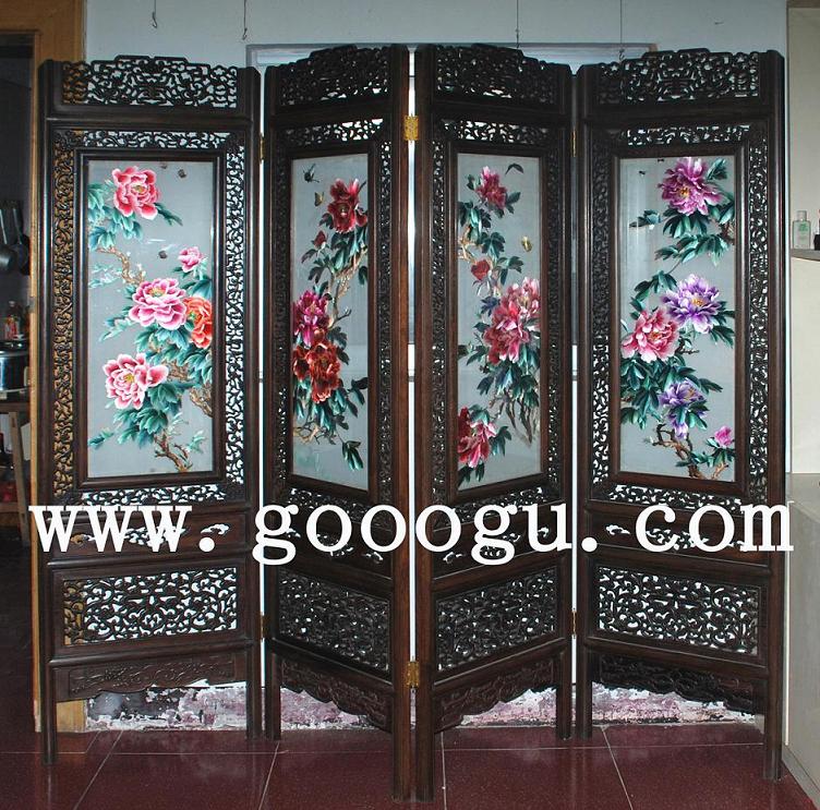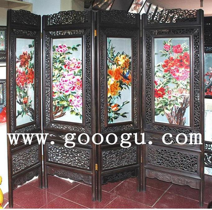牡丹刺繡屏風|工藝木雕屏風|裝飾屏風