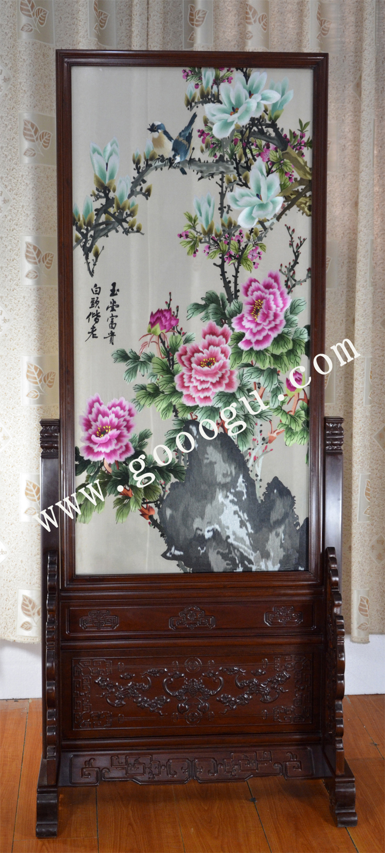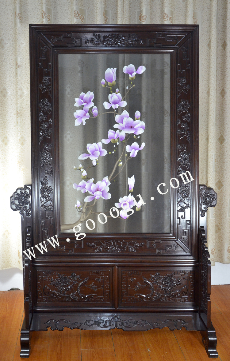 屏風隔斷 實木玄關 純手工刺繡 傳統(tǒng)刺繡工藝 包物流