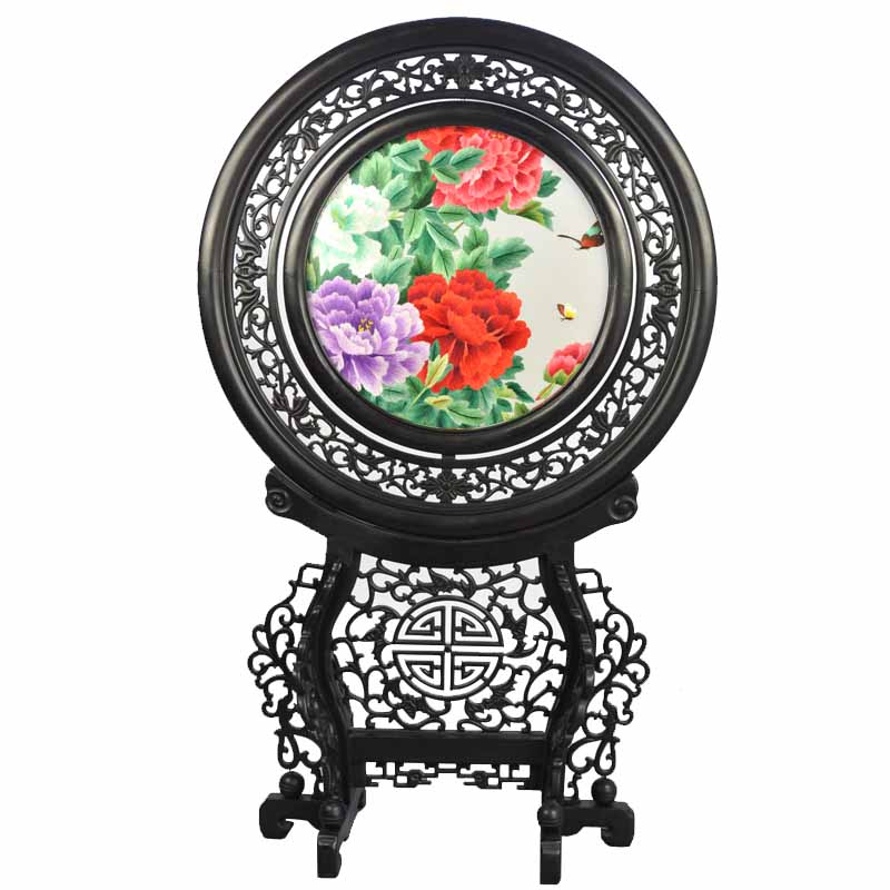 產(chǎn)品名稱:檀木同心圓雕花架(雙面繡) (作品代碼:ST-669) 產(chǎn)品規(guī)格:刺繡圖案尺寸 圓直徑20CM 外框整體尺寸寬32CM,高57CM 產(chǎn)品工藝:蘇州繡娘手工刺繡。繡品可360度旋轉(zhuǎn) 產(chǎn)品材質(zhì):真絲面料+桑蠶絲線+玻璃+紫檀木架 產(chǎn)品包裝:錦盒禮品裝 嬌古出廠價(jià):2800元/件 最小起訂量:1件----廠家直銷,可當(dāng)天發(fā)貨(可混配圖案) 產(chǎn)品描述:【檀木同心圓雕花架】蘇州雙面繡為蘇州繡娘純手工刺繡而成,木框?yàn)槟壳爸袊K州雙面繡最高材質(zhì)紫檀,整體框架花紋雕刻細(xì)膩。圖案有花卉(牡丹,梅花,荷花,蘭花等),花鳥,動(dòng)物(熊貓,老虎,魚等),山水,風(fēng)景,名家字畫等。圖案多達(dá)一百多種,有古色古香的,有現(xiàn)代氣息的,高貴典雅,是贈(zèng)送客人的重要禮品之一。 注:此款為蘇繡雙面繡為高檔蘇繡雙面繡,牡丹題材與蘇繡的結(jié)合,很能代表中國傳統(tǒng)文化特色。手工刺繡做工精美之外講究整體的搭配與意境,是值的推薦的一款蘇繡禮品。(可根據(jù)需要加企業(yè)LOGO等)。 注:此款另有圓直徑為30CM的刺繡圖案,整體尺寸按同比例放大。
