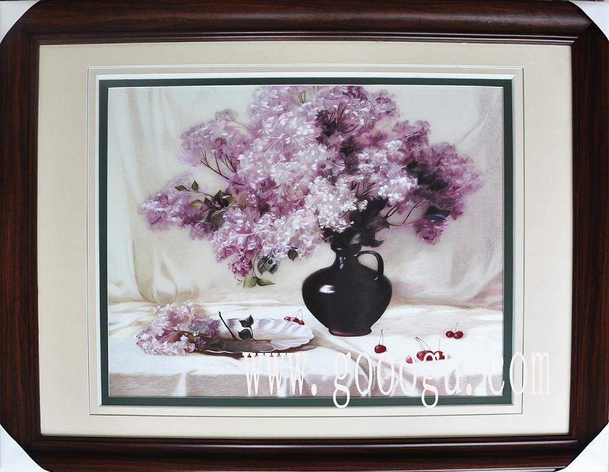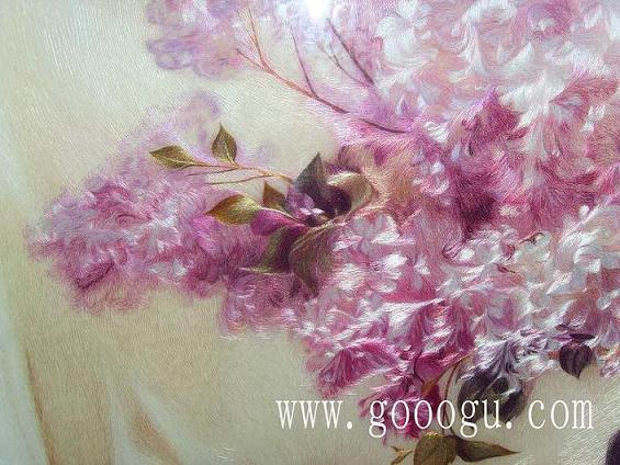蘇繡名稱】:丁香花蘇繡畫  (作品代碼-D0929