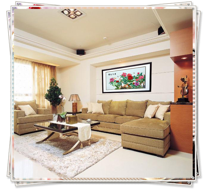 【蘇繡名稱】:國色天香裝飾壁畫 【蘇繡規(guī)格】:60*160(圖案尺寸) 88*200CM(外框尺寸) 【蘇繡工藝】:嬌古蘇繡工藝師 【外框材質(zhì)】:實木框拉丁木 【絲線材質(zhì)】:蠶絲線 【蘇繡檔次】:6-8絲刺繡。 【嬌古蘇繡出廠價】:5200元(含運(yùn)費(fèi)) 【發(fā)貨方式】:由我司安排發(fā)往客人指定地點 【細(xì)節(jié)欣賞】