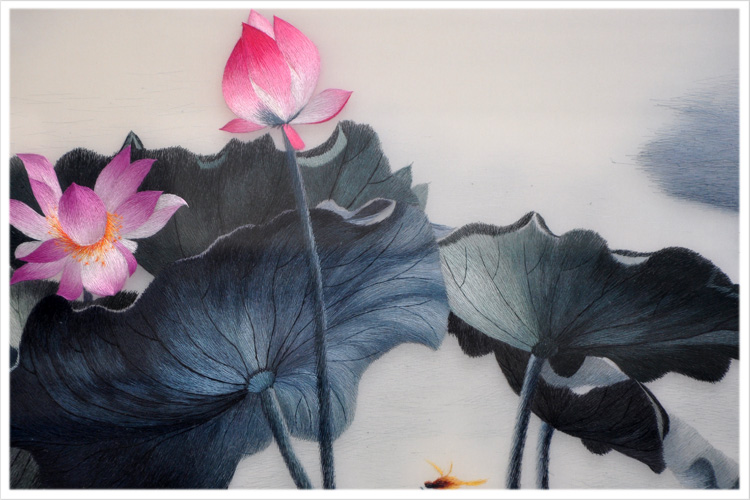 【品 牌】:嬌古 (作品代碼 D-1026) 【品 名】:水墨荷花裝飾畫 【品 質(zhì)】:2-4絲刺繡 (蘇繡小知識:1根蘇繡絲線可分為16絲,中檔刺繡皆為10絲所繡,中高檔刺繡皆為6-8絲,高檔刺繡皆為4-6絲,精品刺繡皆為1-4絲) 【尺 寸】:畫心尺寸60*60cm 整體尺寸90*90cm 【產(chǎn)品工藝】:手工刺繡 【絲線材質(zhì)】:蠶絲線 真絲面料 【用 途】:政府禮品、外賓禮品、生日禮物、賀壽禮品、領(lǐng)導(dǎo)升遷、出國禮品等等。 【出廠價(jià)格】:4800元 【細(xì)節(jié)圖】