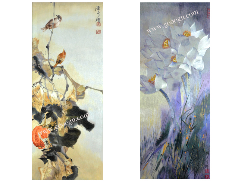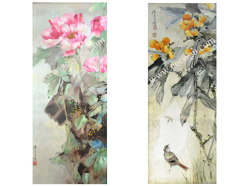 【產(chǎn)品名稱】:花鳥折疊屏風(fēng)---陳志才花鳥(雙面繡)  (作品代碼:ZP-1002)