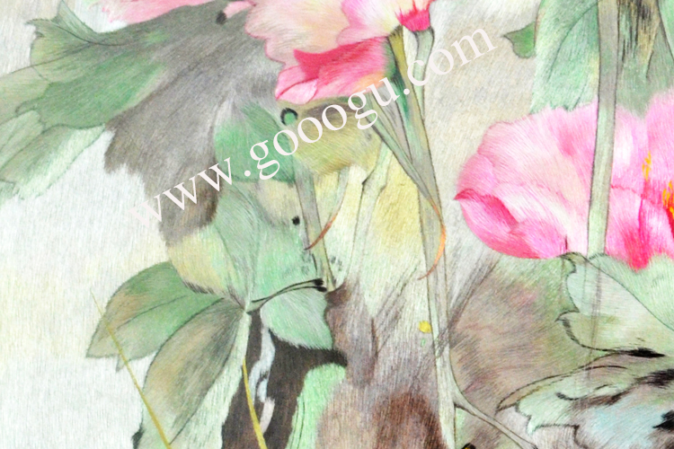 【產(chǎn)品材質(zhì)】:真絲面料+純天然雞翅木框+桑蠶絲線+玻璃