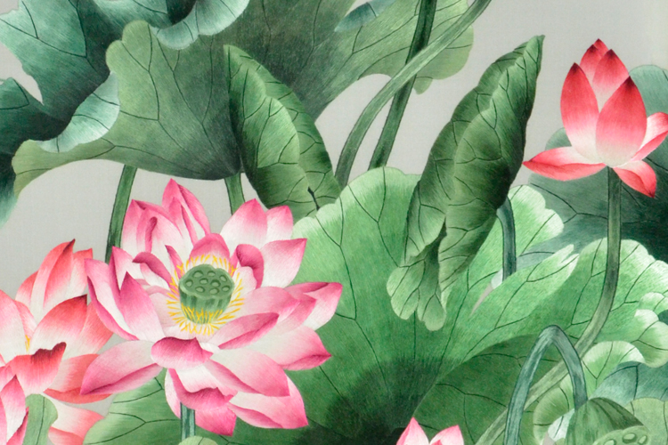 【產(chǎn)品說明】:此款雙面繡屏風(fēng),是由蘇州工藝師耗時數(shù)個月精心手工刺繡而成,刺繡圖案以荷花為題材繡工精細(xì),顏色搭配均勻過渡自然,整體給人舒適,愜意之感,屏風(fēng)的框架選用紫光檀木為料!歡迎親臨嬌古蘇繡展示廳觀看實(shí)物!