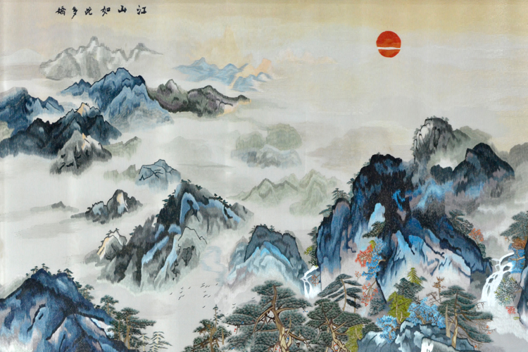 蘇繡山水屏風(fēng) 江山如此多嬌 純手工刺繡 接待室專(zhuān)用