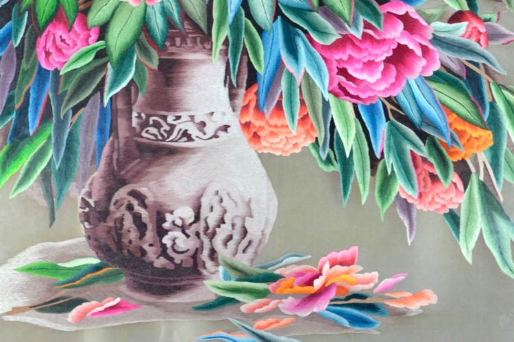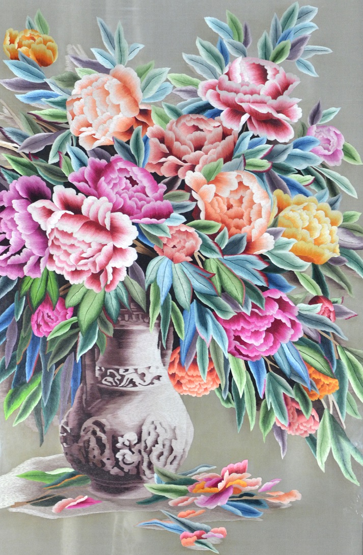 【產(chǎn)品說(shuō)明】:此款雙面繡屏風(fēng),是由蘇州工藝師耗時(shí)三個(gè)月精心手工刺繡而成,刺繡圖案以象征富貴平安的牡丹花瓶為題材繡工精細(xì),顏色搭配均勻過(guò)渡自然,整體給人舒適,愜意之感,屏風(fēng)的框架選用雞翅木為料,是蘇繡屏風(fēng)中的經(jīng)典作品。是家用玄關(guān)或辦公室玄關(guān)的禮品!歡迎親臨嬌古蘇繡展示廳觀看實(shí)物!