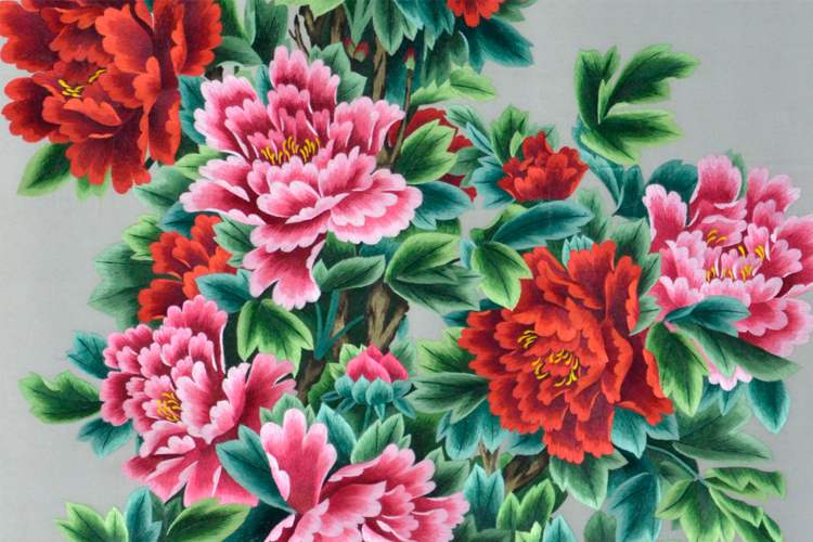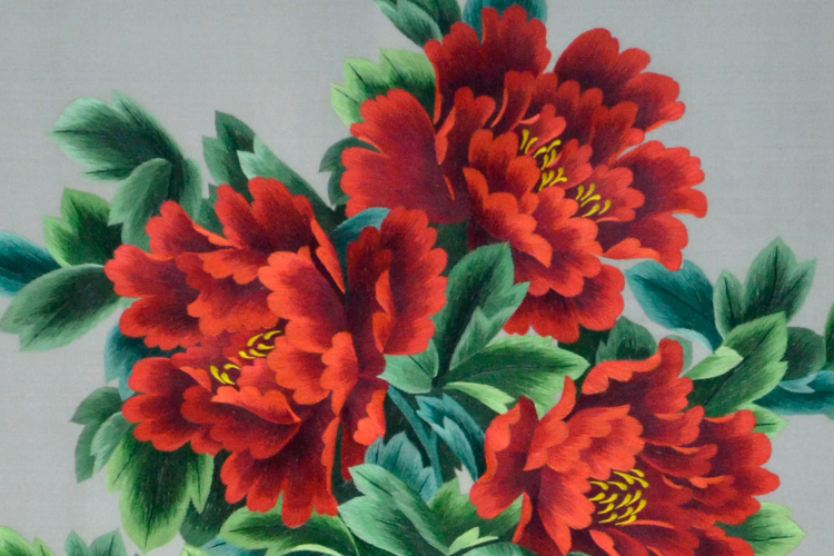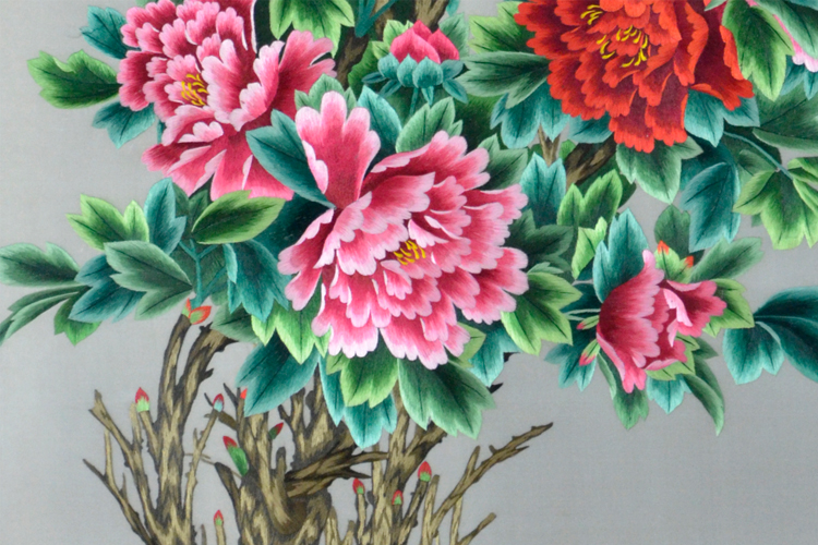 【產(chǎn)品名稱】:蘇繡玄關(guān)屏風(fēng)---富貴榮華(雙面繡)  (作品代碼:P-1102)