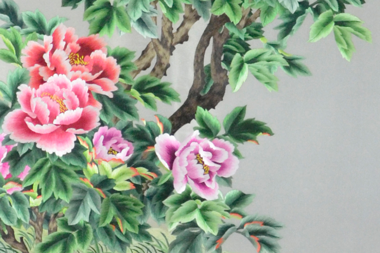 【產品名稱】:蘇繡屏風國色天香(雙面繡) (作品代碼:P-1104) 【產品規(guī)格】:圖案尺寸寬度70cm,高度110cm 外框整體尺寸寬145cm,高220cm 【產品工藝】:手工刺繡 【產品材質】:真絲面料+雞翅木框+桑蠶絲線+玻璃 【產品包裝】:木箱包裝,用海綿包扎,確保運輸安全 【出廠價】:22000元 【產品運輸】:我司負責發(fā)往客戶指定地點,蘇州附近城市可送貨上門! 【產品說明】:此款雙面繡屏風,是由蘇州工藝師耗時三個月精心手工刺繡而成,刺繡圖案以牡丹花為題材繡工精細,顏色搭配均勻過渡自然,屏風的框架選用進口的雞翅木為料,是蘇繡屏風中的經典作品。是企事業(yè)大堂或大廳的重要裝飾品之一!歡迎親臨嬌古蘇繡展示廳觀看實物! 【細節(jié)欣賞】 .jpg)
