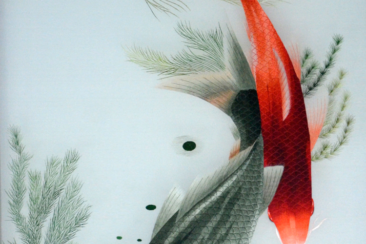 【產(chǎn)品名稱】:蘇繡水草魚屏風(fēng)(雙面繡)  (作品代碼:P-1201)