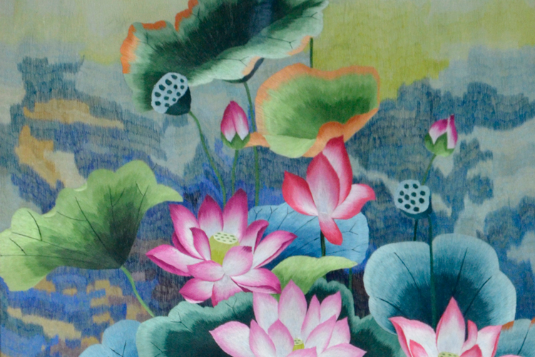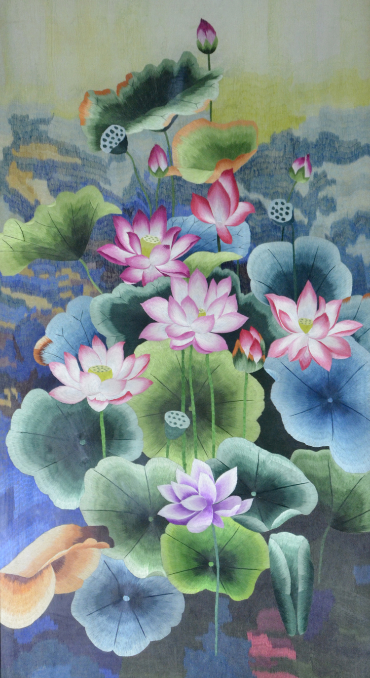 【產(chǎn)品名稱】:蘇繡荷花屏風(fēng)(雙面繡)  (作品代碼:P-1202)