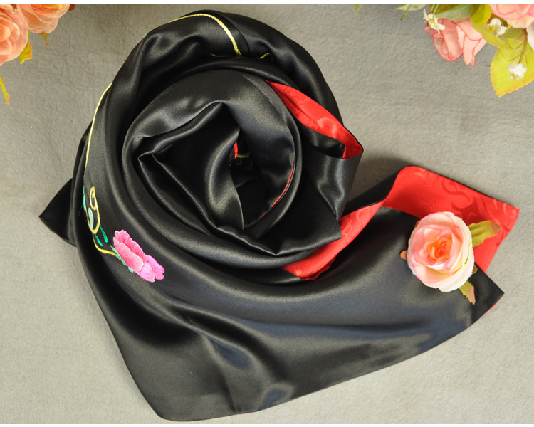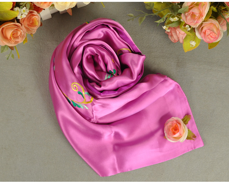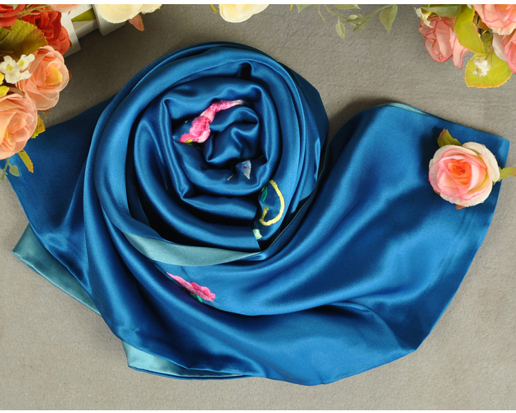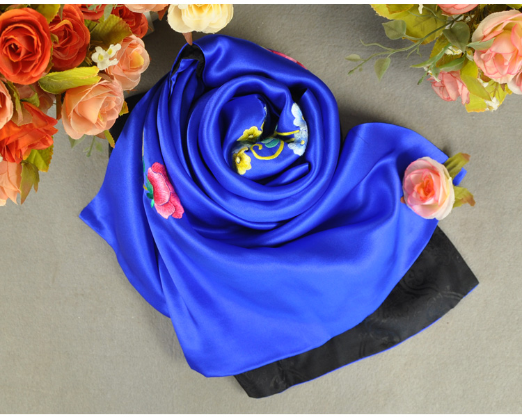 純手工繡花圍巾 真絲圍巾 桑蠶絲 高檔絲綢禮品