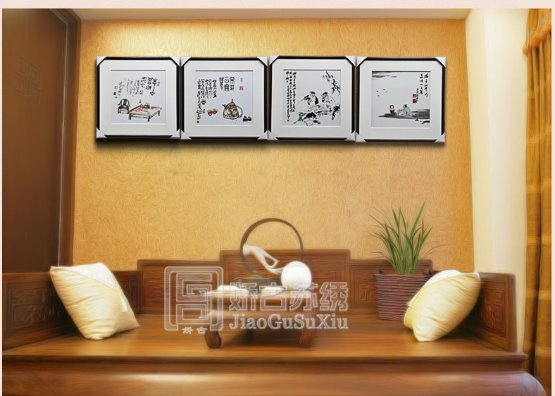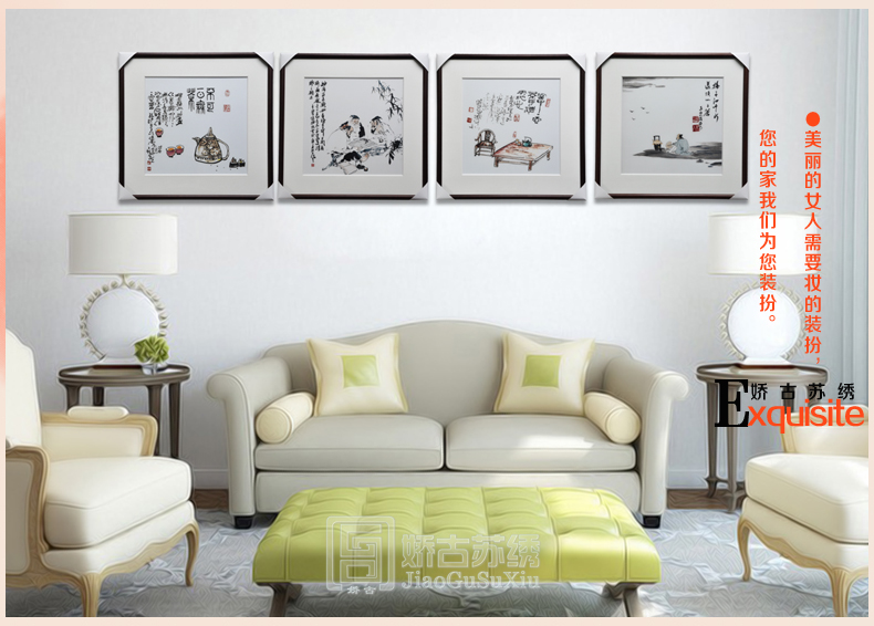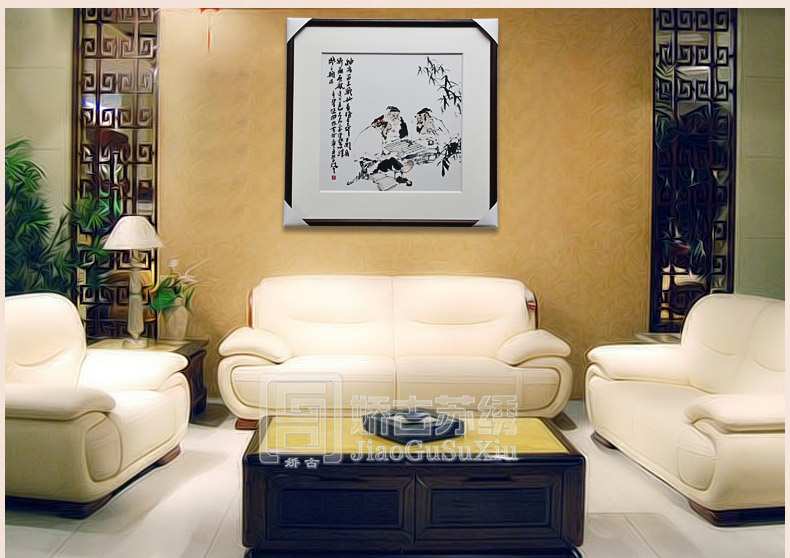 【品 牌】:嬌古 (作品代碼 D-1068) 【品 名】:中國元素裝飾畫(手工蘇繡) 【品 質(zhì)】:4-6絲刺繡 (蘇繡小知識:1根蘇繡絲線可分為16絲,中檔刺繡皆為10絲所繡,中高檔刺繡皆為6-8絲,高檔刺繡皆為4-6絲,精品刺繡皆為1-4絲) 【尺 寸】:畫心尺寸50*50cm 整體尺寸75*75cm 【產(chǎn)品工藝】:手工刺繡+真絲底料 【絲線材質(zhì)】:蠶絲線 【用 途】:政府禮品、個人收藏、外賓禮品、生日禮物、賀壽禮品、領(lǐng)導(dǎo)升遷、出國禮品等等。 【出廠價格】:3000元/幅