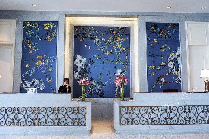 嬌古蘇繡承接杭州尊藍錢江豪華精選酒店大堂背景工程