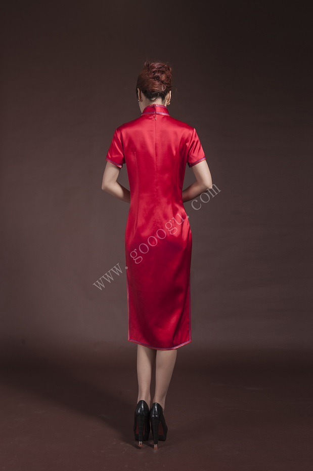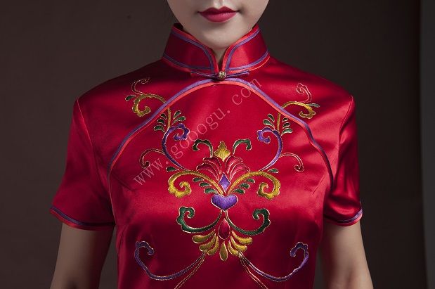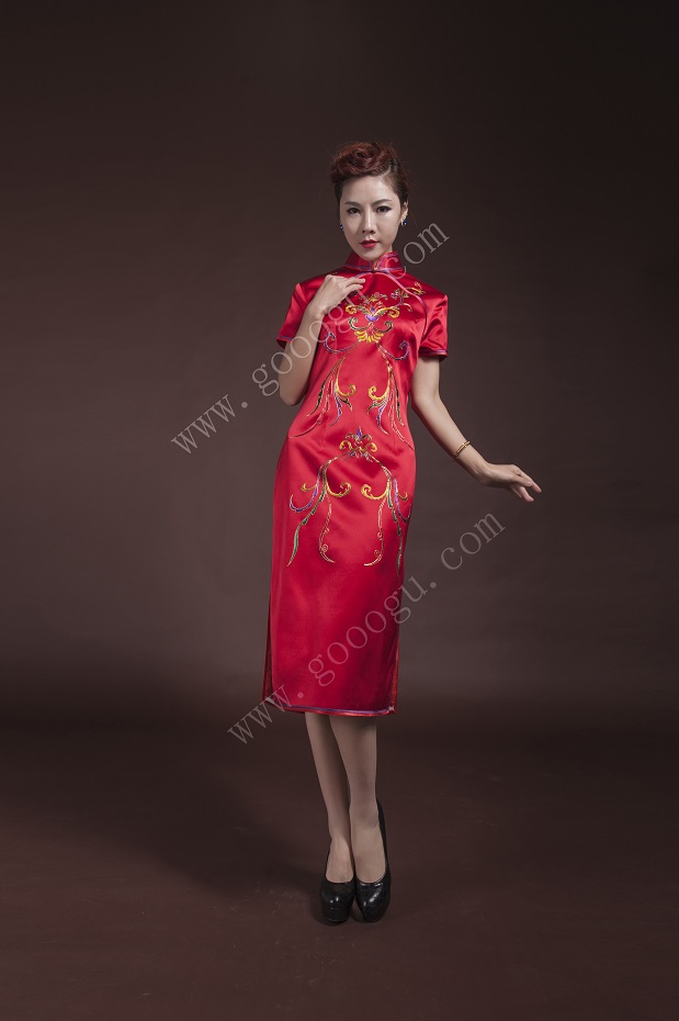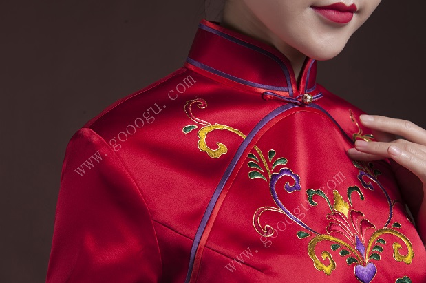 嬌古絲綢純手工刺繡旗袍禮服 高級(jí)定制繡花服裝