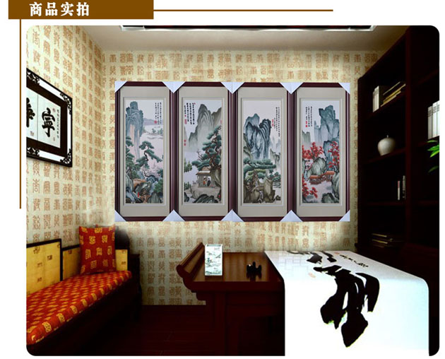 嬌古蘇繡 手工刺繡工藝品 裝飾壁畫(huà)四件套 山水蘇繡畫(huà)