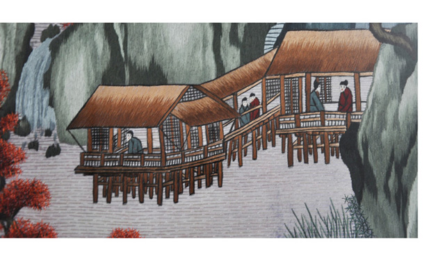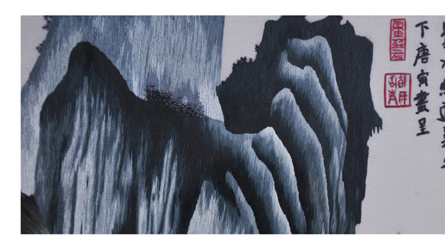 蘇繡名稱:蘇繡裝飾畫(huà)—唐寅山水  (作品代碼-D1928)